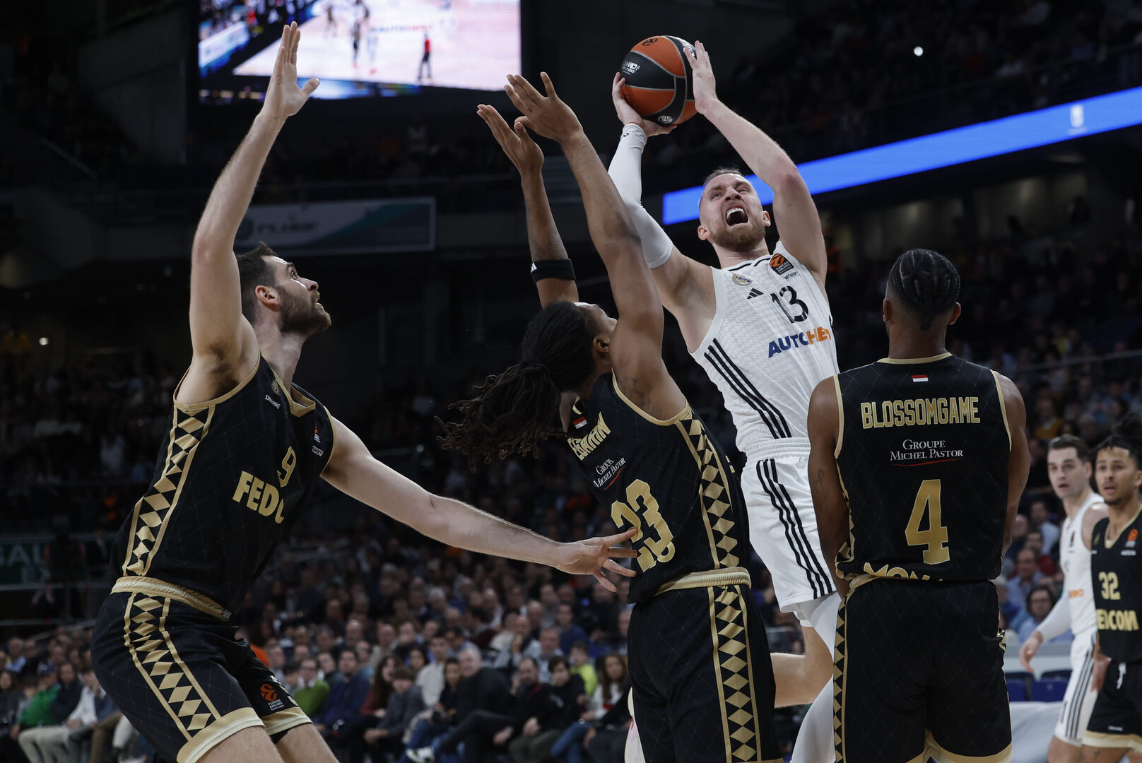 La mala noticia del cuarto y último periodo en las filas del Real Madrid era la gris versión de Andrés Feliz. Enfrente, despertaron tarde hombres como Petr Cornelie y Furkan Korkmaz en tareas ofensivas, a lo que se unían los discretos números de Motiejunas y de Matthew Strazel; tan solo Mike James salvaba el honor del cuadro monegasco.