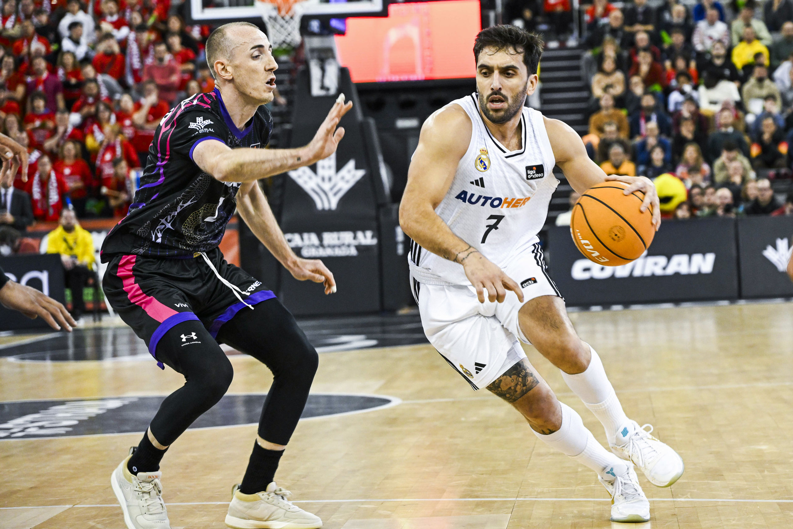 Se llegó a colocar el Covirán Granada 75-70 con menos de cuatro minutos por delante, pero se quedó sin puntos en el momento clave y el argentino Facu Campazzo lideró un parcial de 0-7 (4-14 hasta el final) para voltear el marcador y hacer que el Real Madrid hasta viviera un plácido final de partido.