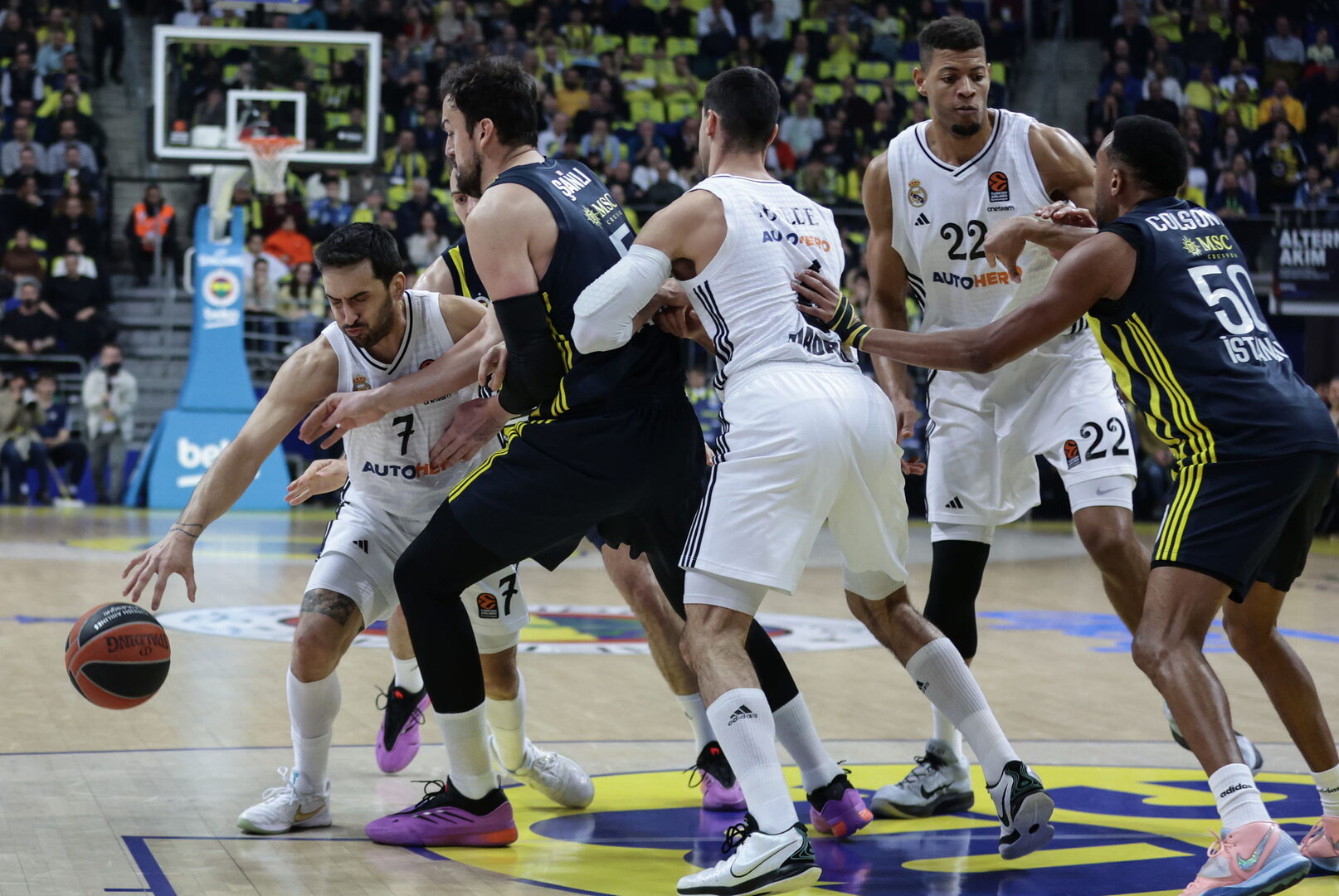 Los dos recientes fichajes del equipo blanco ya debían aportar para una cita muy difícil, pues el Fenerbahçe persigue el liderato que ahora luce el Olympiacos en esta competición. Y con ese ánimo saltaron a la cancha los pupilos de Sarunas Jasikevicius, que tuvieron rentas cortas (8-2, 10-4) hasta quedarse anclados en los 13 puntos. De repente, Smith Jr. coló varias canastas que guiaron la reacción del Real Madrid hasta ponerse 13-16, pero un triple de Tarik Biberovic empató la contienda para cerrar el primer periodo. Los primeros minutos del segundo acto vieron a Andrés Feliz con un triple y a Hugo González con un mate levantar el vuelo visitante, si bien se esfumó rápido.
