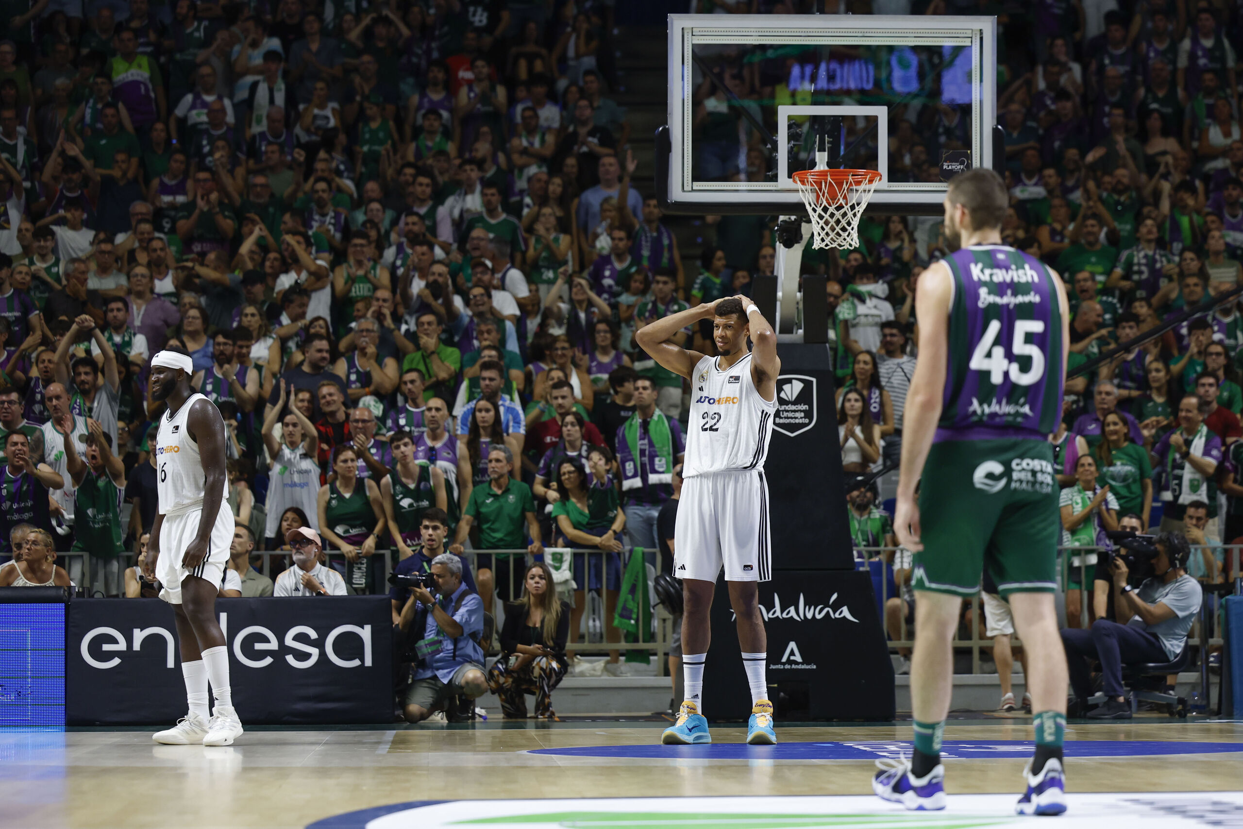 Tras ganar por 99-81 en el primer partido y por 90-75 en el segundo, el Real Madrid estuvo cerca de ganar el tercero que le daba el pase a la final. De hecho, rozó la prórroga después de ir perdiendo de 19 puntos en el segundo cuarto, pero al cuadro malacitano le valió su fenomenal primer tiempo y su aguante físico y mental en los últimos segundos.