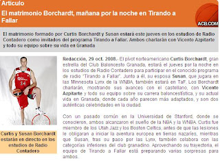 Tan sólo faltan unas horas para que se produzca la ansiada visita de Susan y Curtis Borchardt a Tirando a Fallar. Las web oficiales de la ACB y del CB Granada ya se han hecho eco de la noticia...