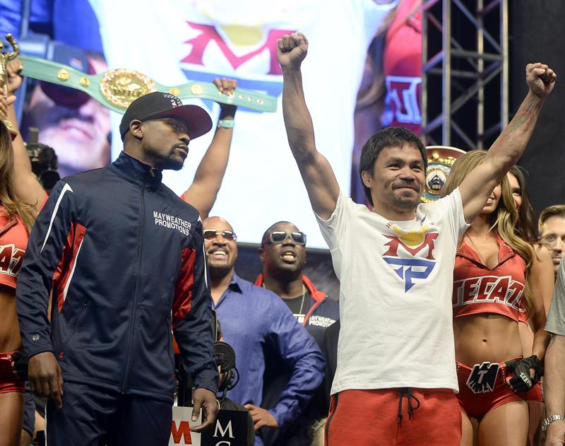 Los púgiles Floyd Mayweather Jr., estadounidense, y Manny Pacquiao, filipino, superaron el pesaje oficial para la pelea de este sábado por la unificación del peso welter al estar ambos dentro del límite de las 147 libras (66,738 kilogramos).