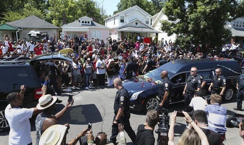 Horas antes, unas 1.500 personas se congregaron en la vivienda en la que Ali vivió su infancia, en un barrio afroamericano de la ciudad. Cuando el coche fúnebre se ha aproximado, los agentes de Policía han permanecido hombro con hombro para dejarle paso, como en su día le hacían pasillo cuando Alí se dirigía el cuadrilatero.
