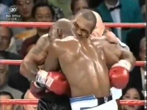 Por su parte, el Chico Dinamita soltó una primera mordida a Evander que le costó un castigo, pero a 40 segundos de finalizar el tercer round, Mike soltó otra mordida, en la que arrancó un trozo de cartílago de la oreja del adversario para después escupirlo en medio del ring.