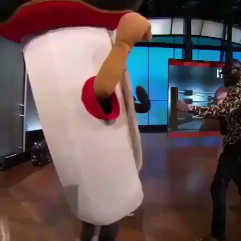 Un campeón de boxeo revienta la mandíbula de la mascota de un programa de televisión