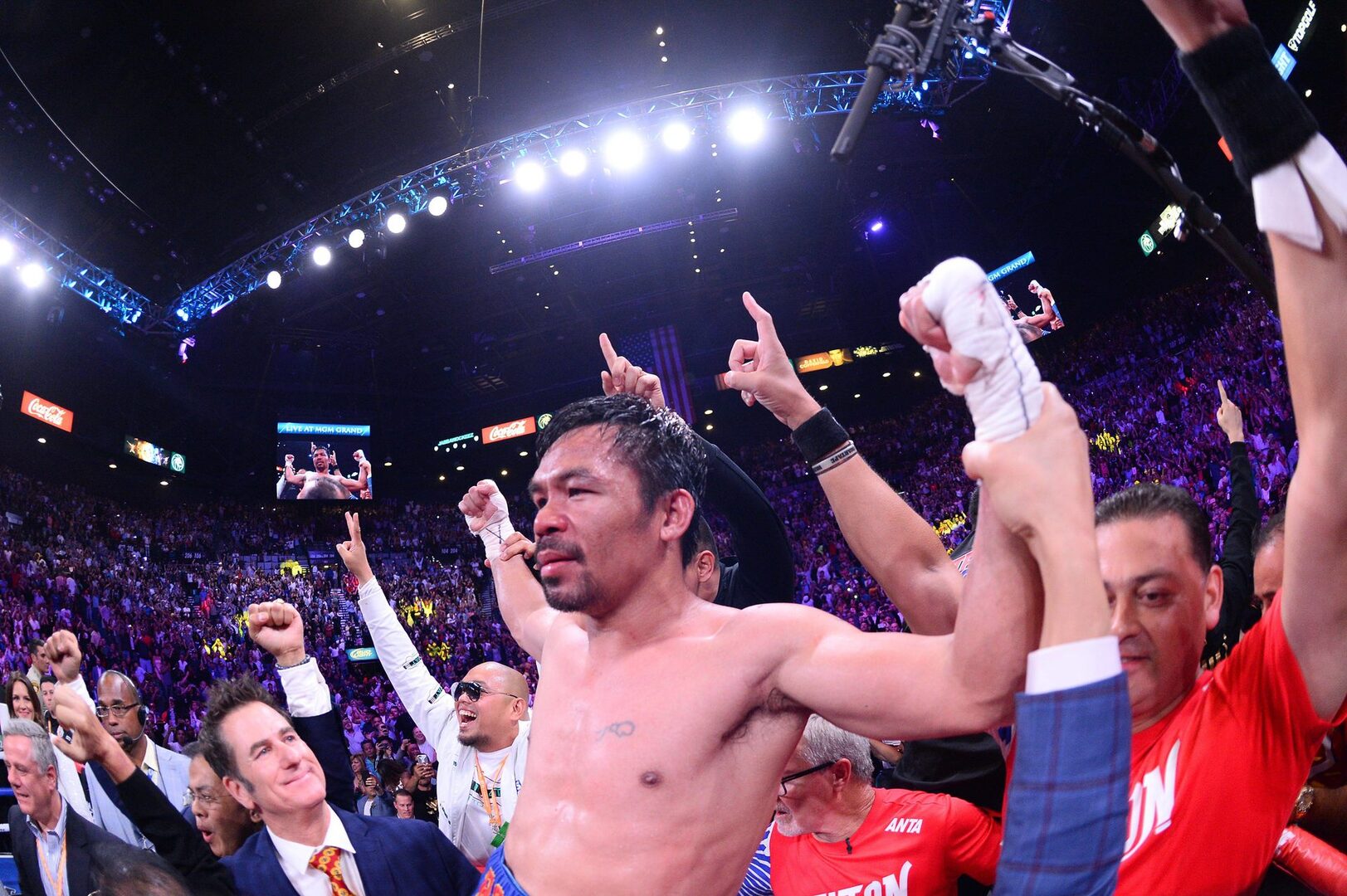 Ante una asistencia de 14.356 personas en el MGM Grand Garden Arena, en Las Vegas (Nevada) Pacquiao volvió a coronarse campeón mundial al quitarle el invicto a Thurman. Es, además, el quinto peleador de más edad en conseguir una corona mundial.