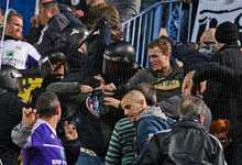Los agentes cargaron contra un grupo de hinchas belgas, que causaron destrozos tanto dentro como fuera de La Rosaleda.