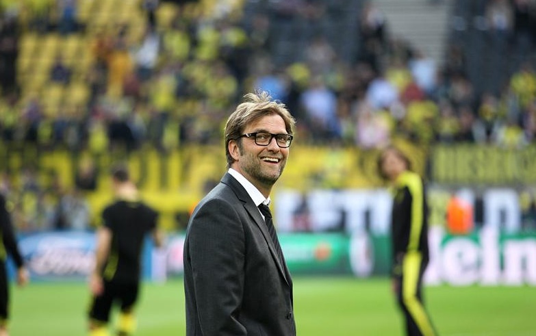 El técnico del Borussia Dortmund, Jürgen Klopp, sonríe antes del inicio del partido. ¿Premonición?