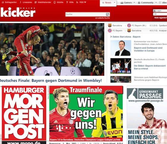 El diario deportivo Kicker, por su parte, señala que "el titulo internacional para un club alemán que se anheló durante tantos años va a llegar en Wemble". "El Bayern humilla otra vez al Barcelona", titula el mismo medio su reseña del partido.