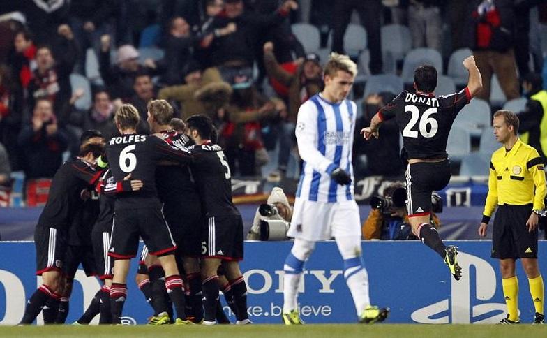 La Real Sociedad se marcha de Europa sin conocer el triunfo tras perder en casa contra el Bayer 04 Leverkusen, que pasa a octavos de final beneficiado por el triunfo del Manchester United en el otro encuentro de grupo ante un Shakhtar Donetsk, que va a la Liga Europa.