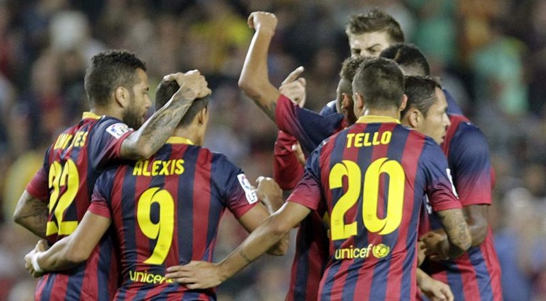 FC Barcelona: Pinto; Montoya, Bartra, Mascherano, Alba; Busquets, Iniesta, Sergi Roberto; Pedro, Neymar y Alexis