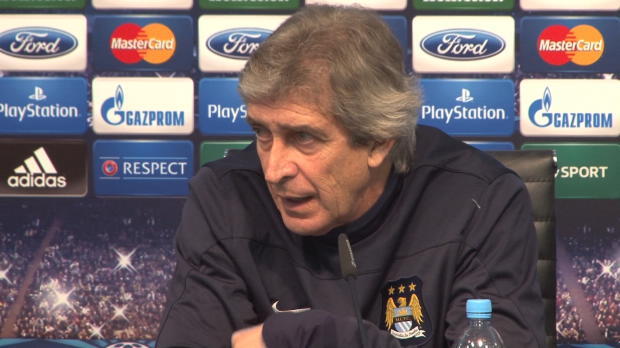 El técnico del Manchester City, Manuel Pellegrini, ha hablado en rueda de prensa en el Etihad Stadium un día antes de recibir al Barcelona en la ida de octavos de final de la Liga de Campeones.