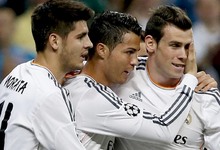 Cristiano Ronaldo celebra con Morata y Bale uno de sus dos goles al Schalke. | EFE