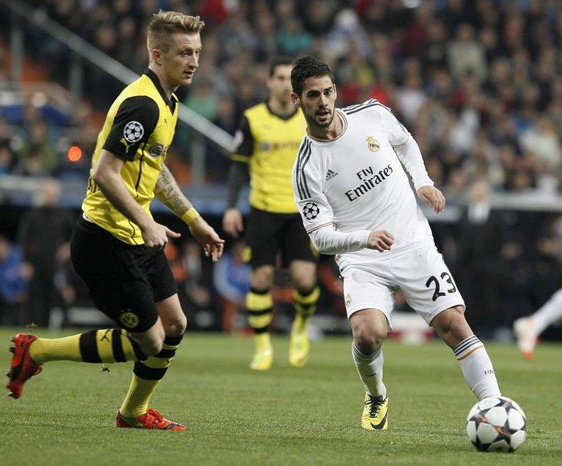 Jürgen Klopp afrontaba el envite con muchas bajas, pues a la del sancionado Lewandowski hay que sumar la de los lesionados Gündongan, Subotic, Schmelzer, Bender y Blaszczykowski. En el Madrid, Ancelotti recibió dos varapalos en 24 horas: primero se cayó Marcelo, por una rotura muscular, y luego Di María, baja por gastroenteritis. El hueco del argentino lo cubrió Isco, que estuvo a muy buen nivel e incluso marcó.