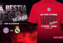 comentarios Tras conocer su duelo con los blancos, el club bávaro ponía en venta camisetas y bufandas con la leyenda "Vamos a Lisboa. La bestia negra reloaded".