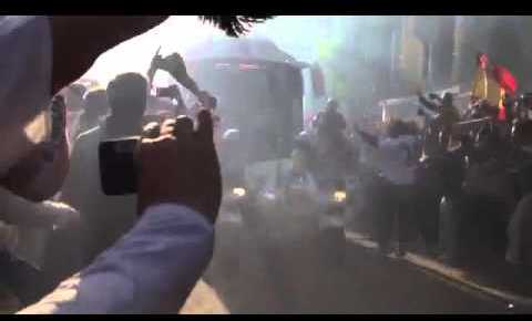 Llegada del autobús de Real Madrid al Bernabéu
