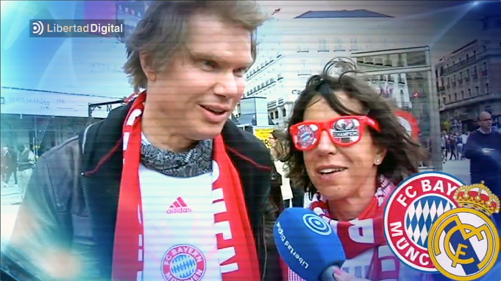 Esta noche el Santiago Bernabéau acoge el encuentro de ida de semifinales de Champions League entre el Real Madrid y el Bayern de Múnich. Miles de aficionados del equipo alemán ya están en Madrid para animar a su equipo y disfrutar de la visita por el centro de la ciudad. Las cámaras de Libertad Digital han recorrido la capital para preguntar a los alemanes por el resultado para el decisivo partido.
