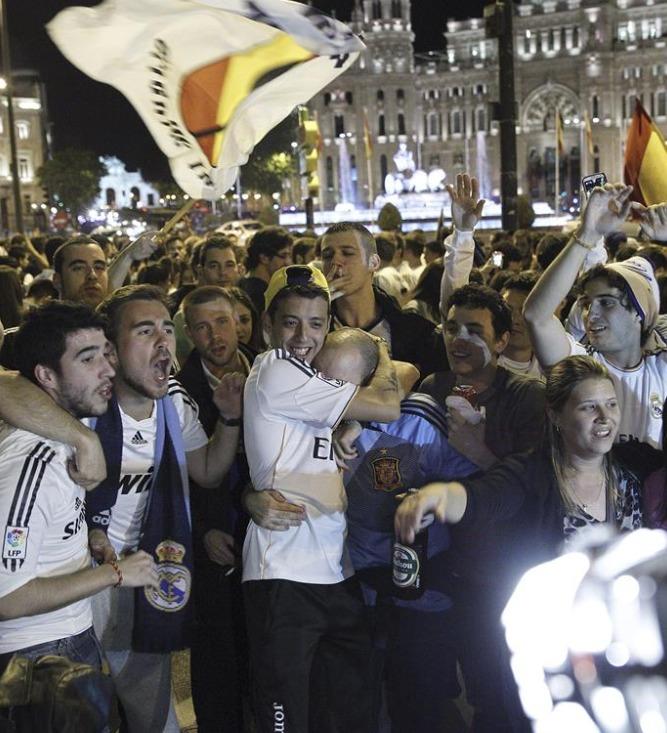 La fuente de Cibeles estaba vallada desde varias horas antes en previsión de una victoria madridista que les metiera, doce años después, en otra final de la Liga de Campeones.