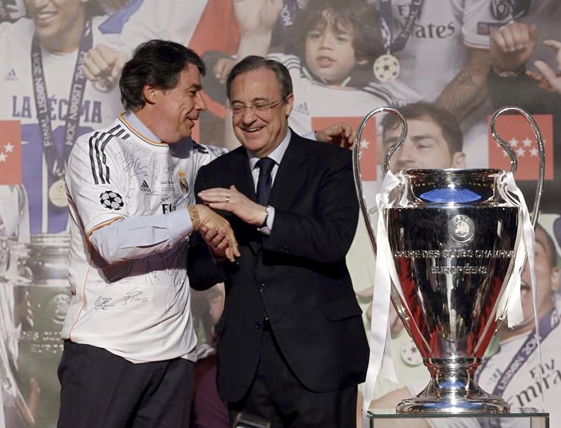Ignacio González, presidente de la Comunidad de Madrid, se puso la camiseta del Real Madrid en presencia de Florentino Pérez y con la Décima como testigo.