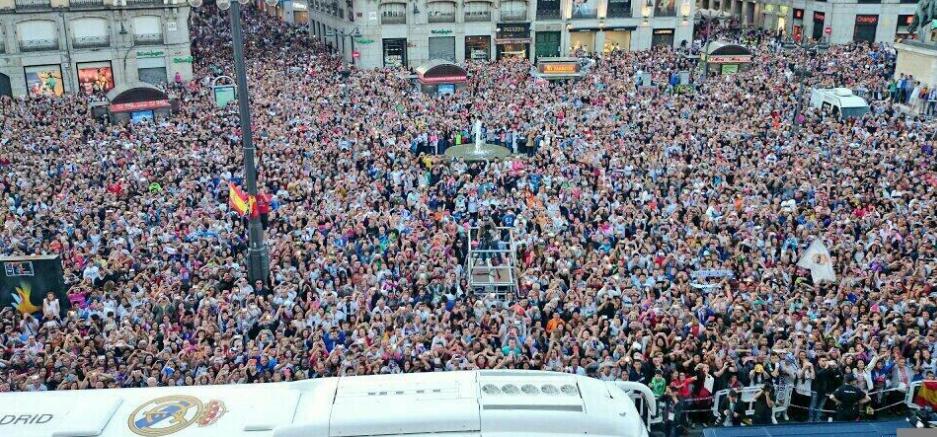 Espectacular ambiente en la Puerta del Sol para recibir a los campeones de Europa.