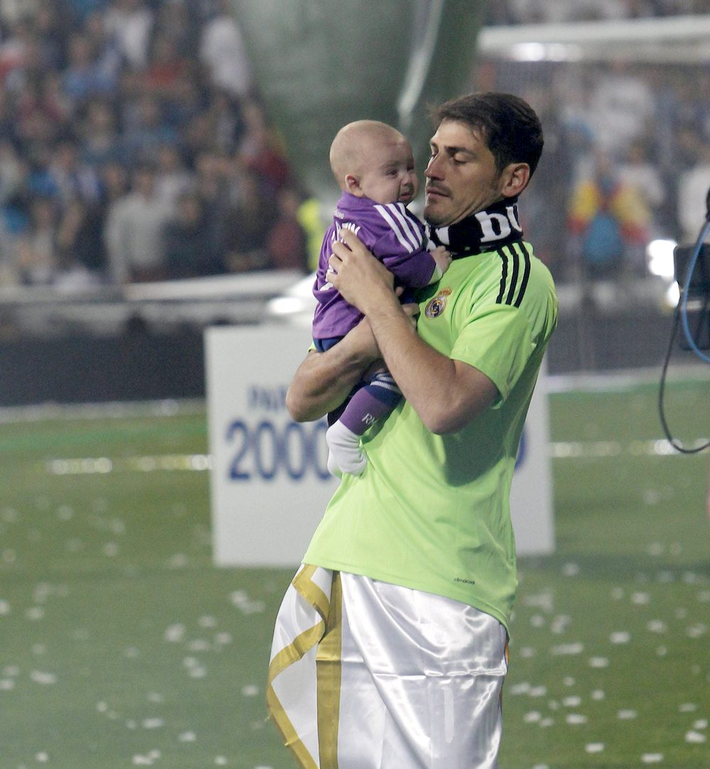 El pequeño Martín Casillas, que el próximo día 3 de junio cumplirá cinco meses, en brazos de su padre durante las celebraciones.