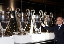 Florentino Pérez, junto a las Copas de Europa del Real Madrid. | Archivo
