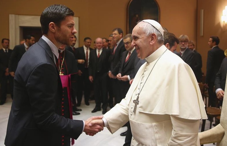 Cómo no, Xabi Alonso, que jugó los 90 minutos en Roma, también estrechó la mano de Francisco.