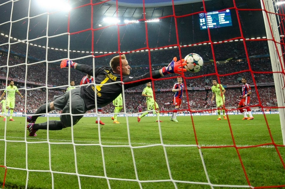 El portero alemán del Barcelona firmó un partido soberbio con cuatro paradones: dos a Lewandowski, uno a Müller y otro a Schweinsteiger.