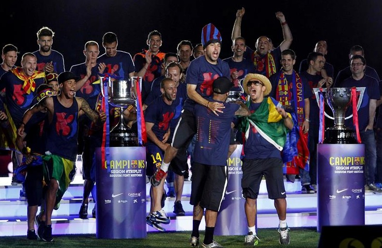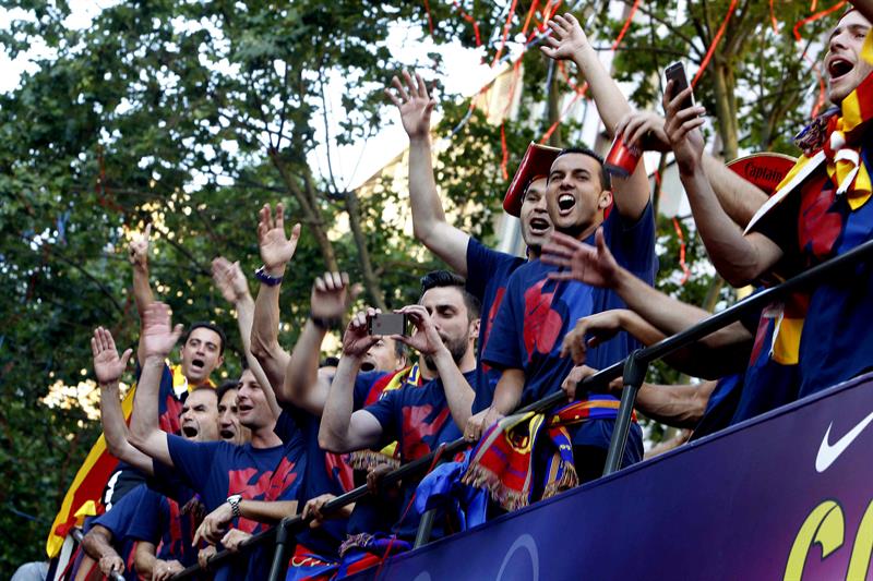 Toda la plantilla, a excepción de Claudio Bravo -que ya está camino de Chile para disputar la Copa América-, se dio un baño de masas para celebrar el triplete.