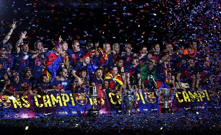 La fiesta vivida en el Camp Nou, con la asistencia de unos 70.000 aficionados, ha puesto el broche de oro a una gran jornada de celebraciones del FC Barcelona, que comenzaba con el recorrido en autobús descapotable por las principales calles de la Ciudad Condal.