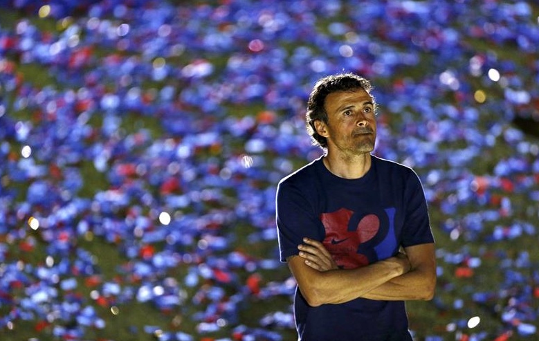 El técnico Luis Enrique Martínez observa impresionado el ambiente que se vivió en el Camp Nou.