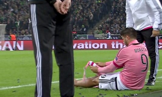 La Juventus vistió de rosa en Alemania y Morata, además de las medias de ese color, se puso también unos calcetines, en una práctica habitual entre los futbolistas. Su error fue que los eligió de color fucsia, por lo que el árbitro le llamó la atención y le obligó a salir del terreno de juego para quitárselos. Pero el jugador madrileño tardó una eternidad en cambiarse las medias, y eso indignó a Allegri.
