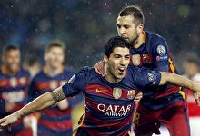 Luis Suárez celebra su gol junto a Jordi Alba. | EFE