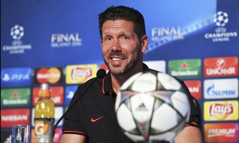 El argentino Diego Simeone, entrenador del Atlético de Madrid, está encantado con la presión de disputar la final de la Liga de Campeones, con "113 años de historia en la espalda", los que tiene su club, con el anhelo de la Copa de Europa, de la que señaló que, cuando insistes, "las cosas aparecen".