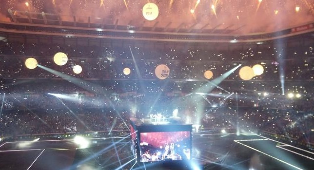Manuela Carmena y Florentino Pérez ofrecen la Orejona desde el balcón del Ayuntamiento.