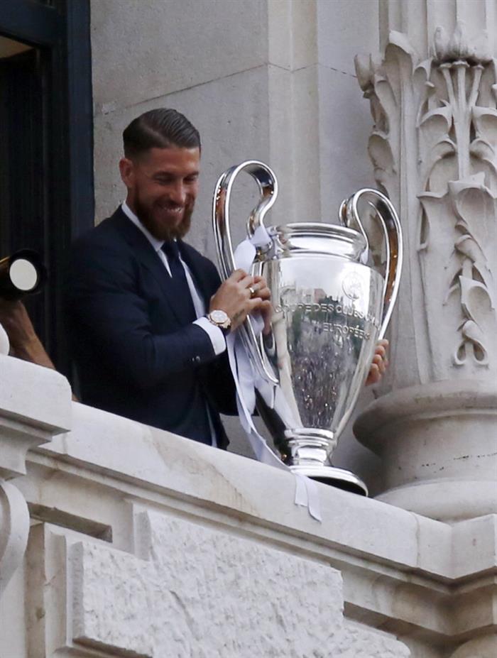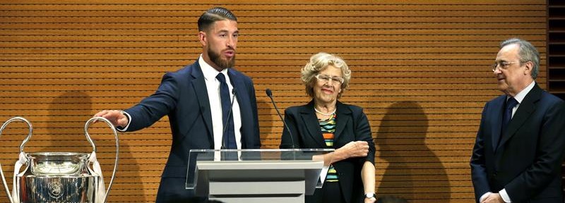 Sergio Ramos, con 'la orejona' junto a Manuela Carmena y Florentino Pérez