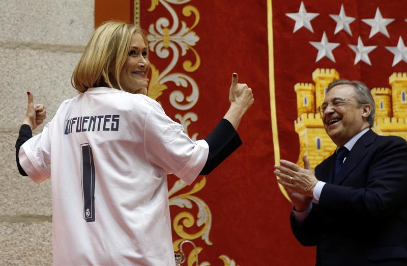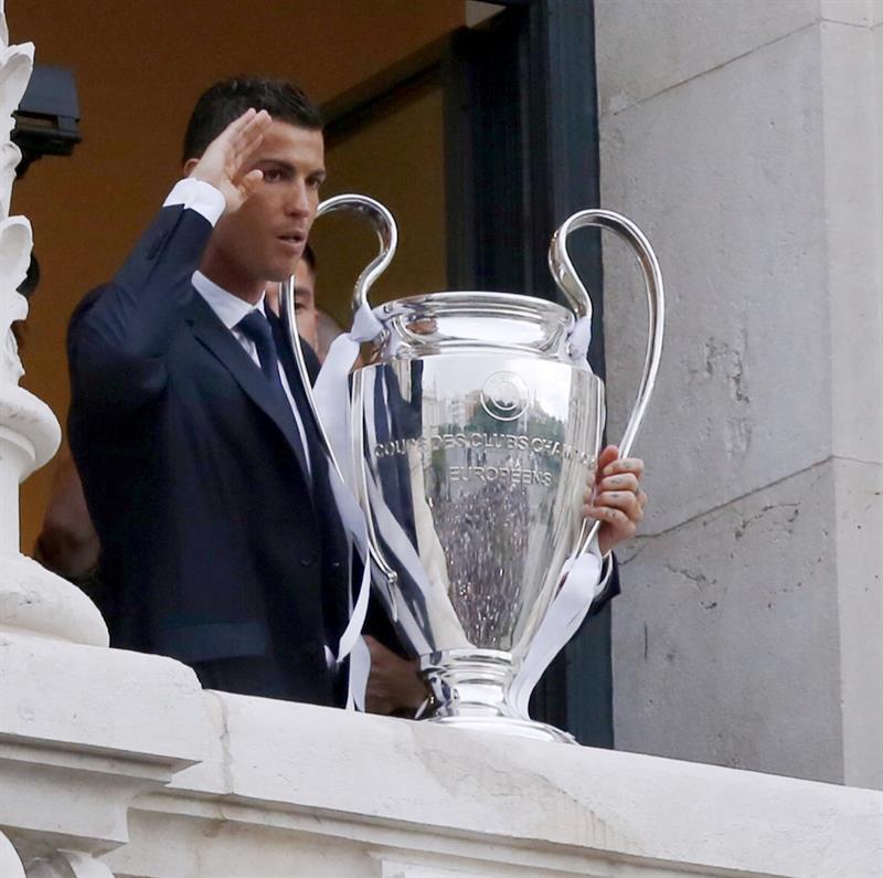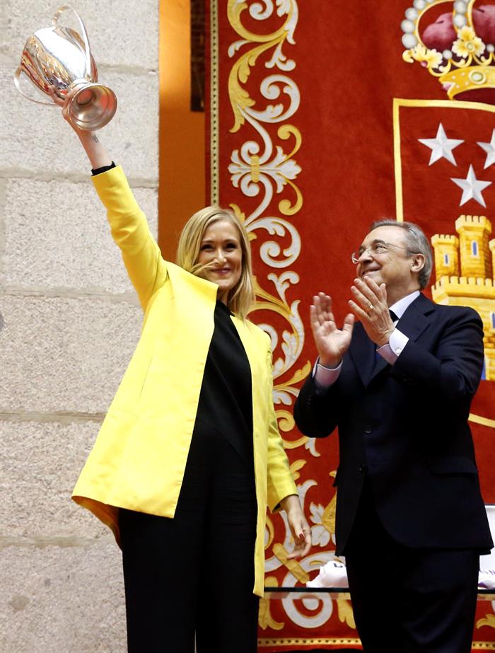 Con la plaza de Sol a reventar, Ramos y Cifuentes posan con la Orejona.