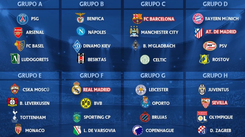 En cuanto al resto de grupos, destaca la suerte que ha tenido el Oporto de Iker Casillas. Los dragones se las verán con el Brujas y el Copenhague y su gran rival será el Leicester City de Claudio Ranieri, campeón de la Premier League. En el A coincidirán el París Saint-Germain y el Arsenal, mientras que el E resulta uno de los más igualados y es difícil pronosticar quién pasará a octavos de final, pues allí coincidirán equipos de la talla del CSKA de Moscú, Bayer Leverkusen, Tottenham Hotspur y Mónaco, este último verdugo el martes del Villarreal en la fase previa y que, por tanto, impidió que este año en la liguilla haya cinco equipos españoles.