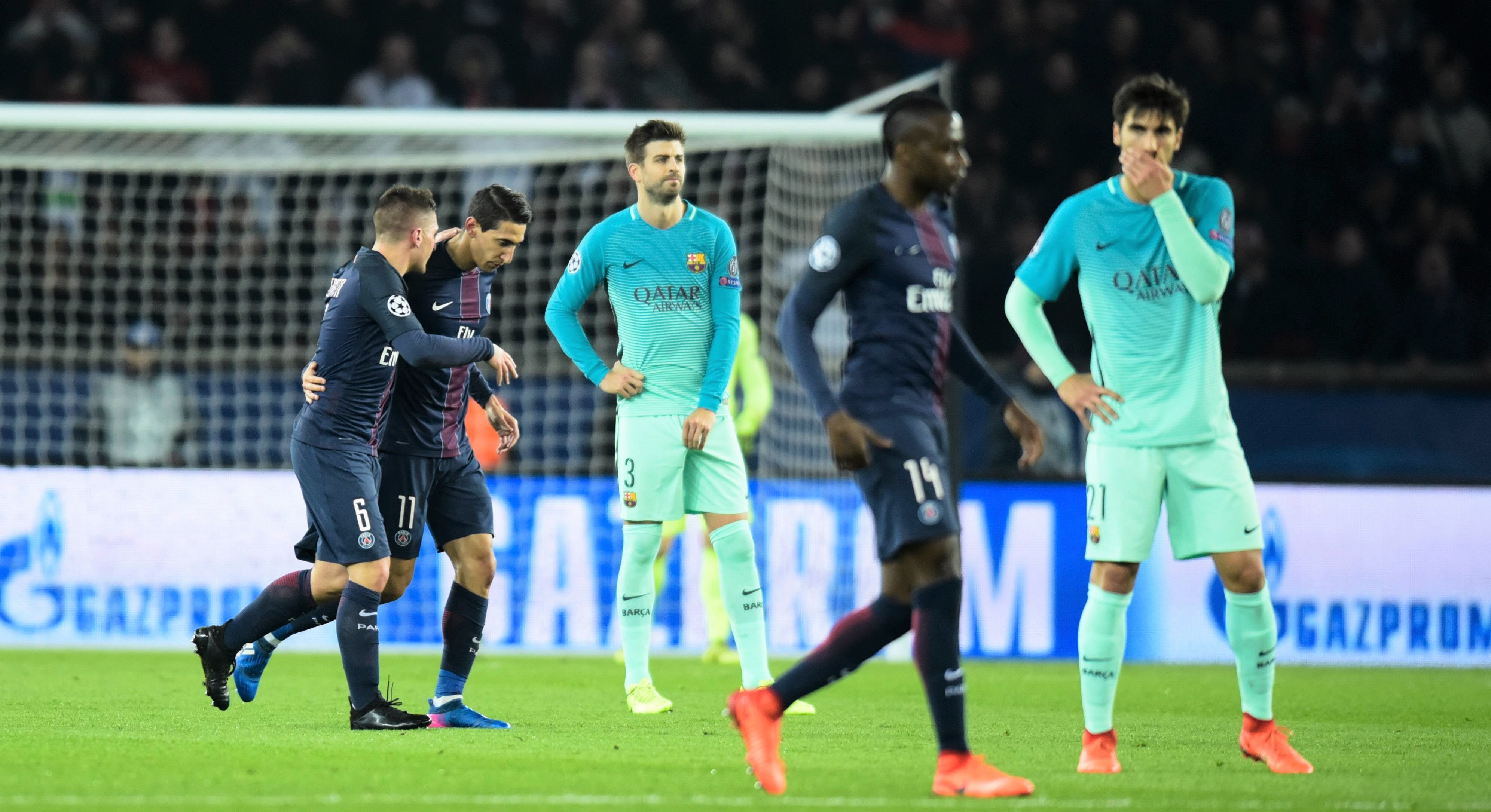 Los azulgranas estaban con la soga al cuello. Se esperaba una reacción visitante tras el paso por vestuarios. Pero nada más lejos de la realidad. El París Saint-Germain, espoleado por su animosa afición en el Día de los Enamorados, se creció e hizo más sangre. En el minuto 55 volvió a golpear Di María: el argentino recibió el balón en la frontal del área grande, amagó con abrir hacia la derecha, se marchó de un blandito Iniesta y volvió a sorprender a Ter Stegen con otro misil imparable.