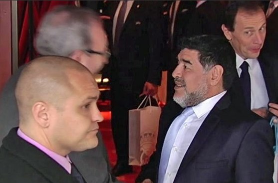 Juntar a un hombre tan serio y formal como Emilio Butragueño con Diego Armando Maradona dejó en la previa del partido en el Bernabéu una de las imágenes del día. El Director de Relaciones Institucionales fue pillado lanzando un gesto de asombro al ver el estado del argentino en la comida de directivas.