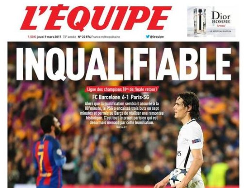 Sólo en Francia, lógicamente, se habla de humillación tras perder la renta de 4-0 que el PSG había cosechado en la ida.