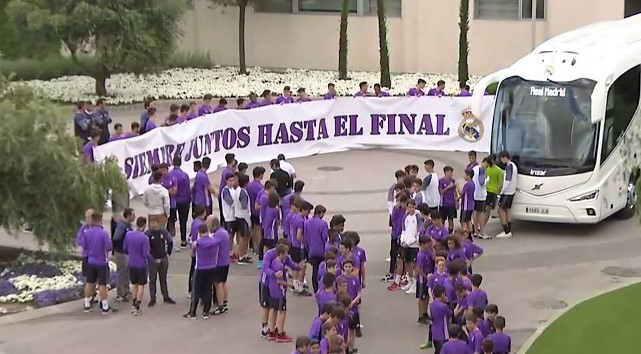 Los jóvenes de la cantera hicieron posteriormente un pasillo al autobús del Real Madrid mientras abandonaba la Ciudad Deportiva pocos minutos antes de las 19:00 horas precedido por motoristas de las fuerzas de seguridad.