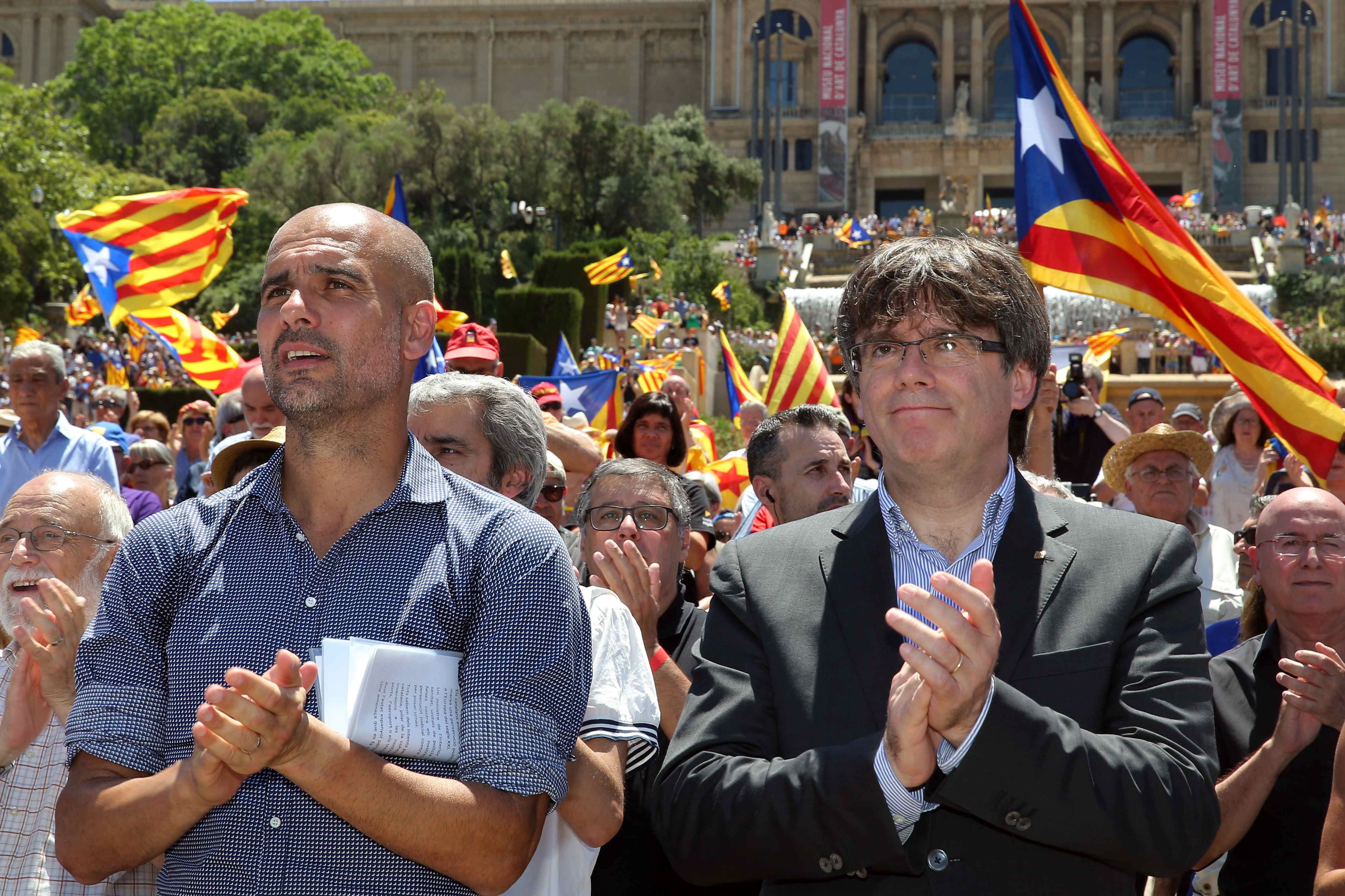 Guardiola, entrenador del Manchester City, declaró tras la victoria ante el Nápoles en Liga de Campeones que "es un buen momento para dedicarles la victoria" a los líderes de las organizaciones independentistas ANC y Ómnium Cultural, Jordi Sánchez y Jordi Cuixart, encarcelados por el delito de sedición.