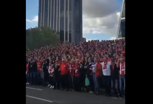 El club ha publicado un vídeo con parte de sus aficionados saltando y cantando cerca del Santiago Bernabéu.