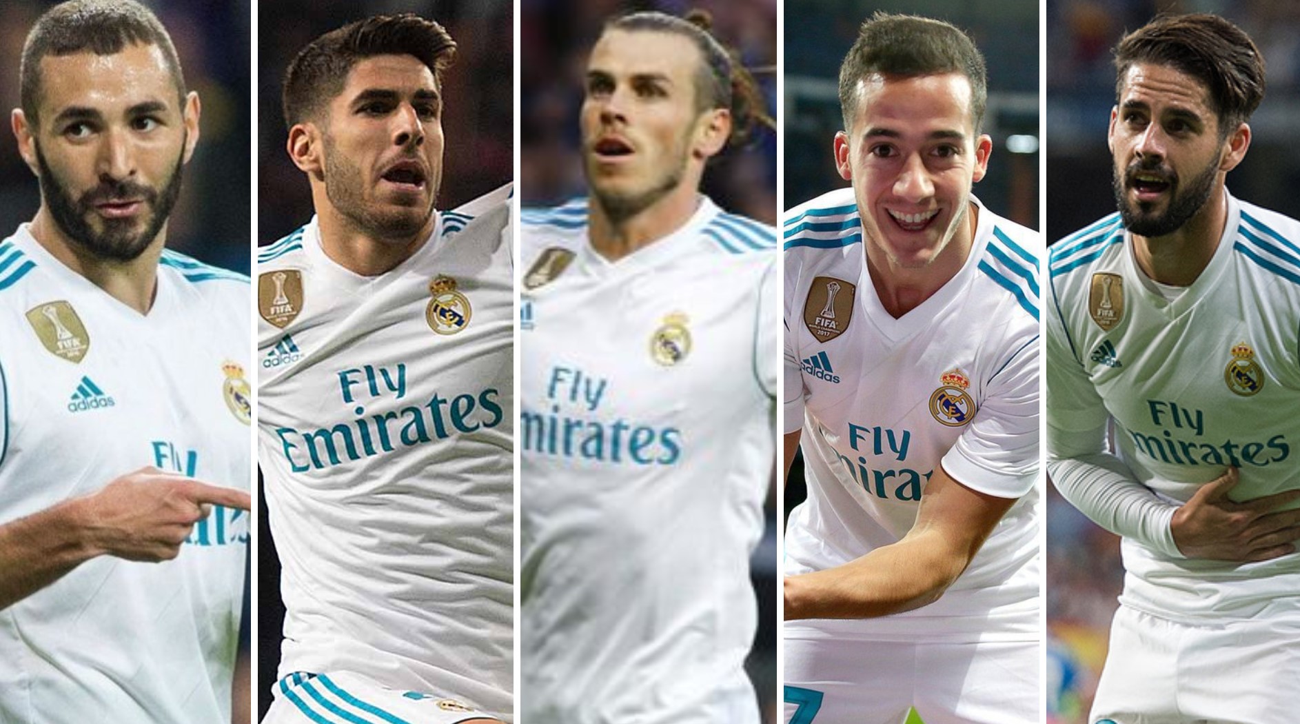 Dos puestos por definir, para los que optan cinco candidatos: Karim Benzema, Marco Asensio, Lucas Vázquez, Gareth Bale e Isco Alarcón.
