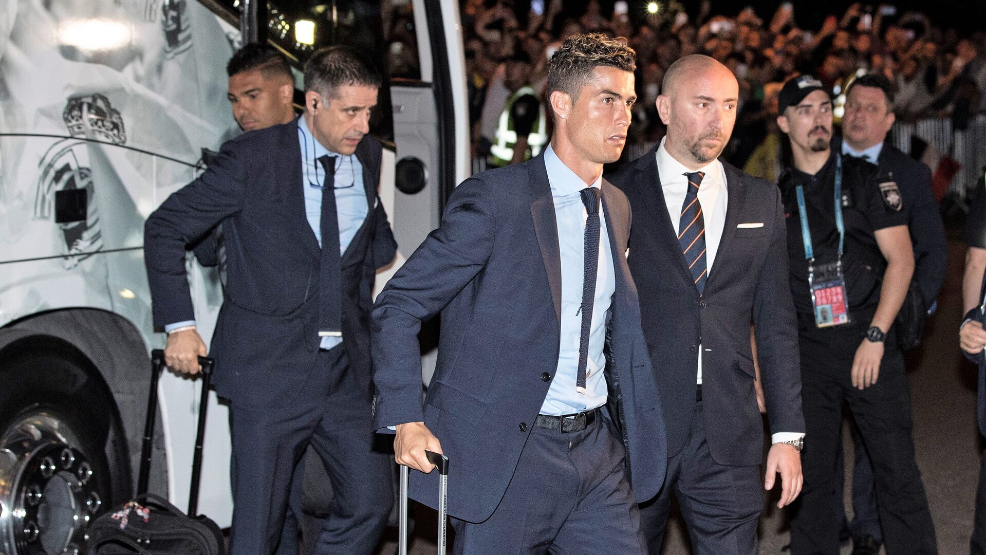 El Real Madrid llegó al Opera Hotel en el centro de Kiev ante gran expectación, con cerca de unos 600 aficionados coreando el nombre de Cristiano Ronaldo, el primero en bajarse del autobús tras un viaje de cinco horas, cuatro en avión y una en autobús.
