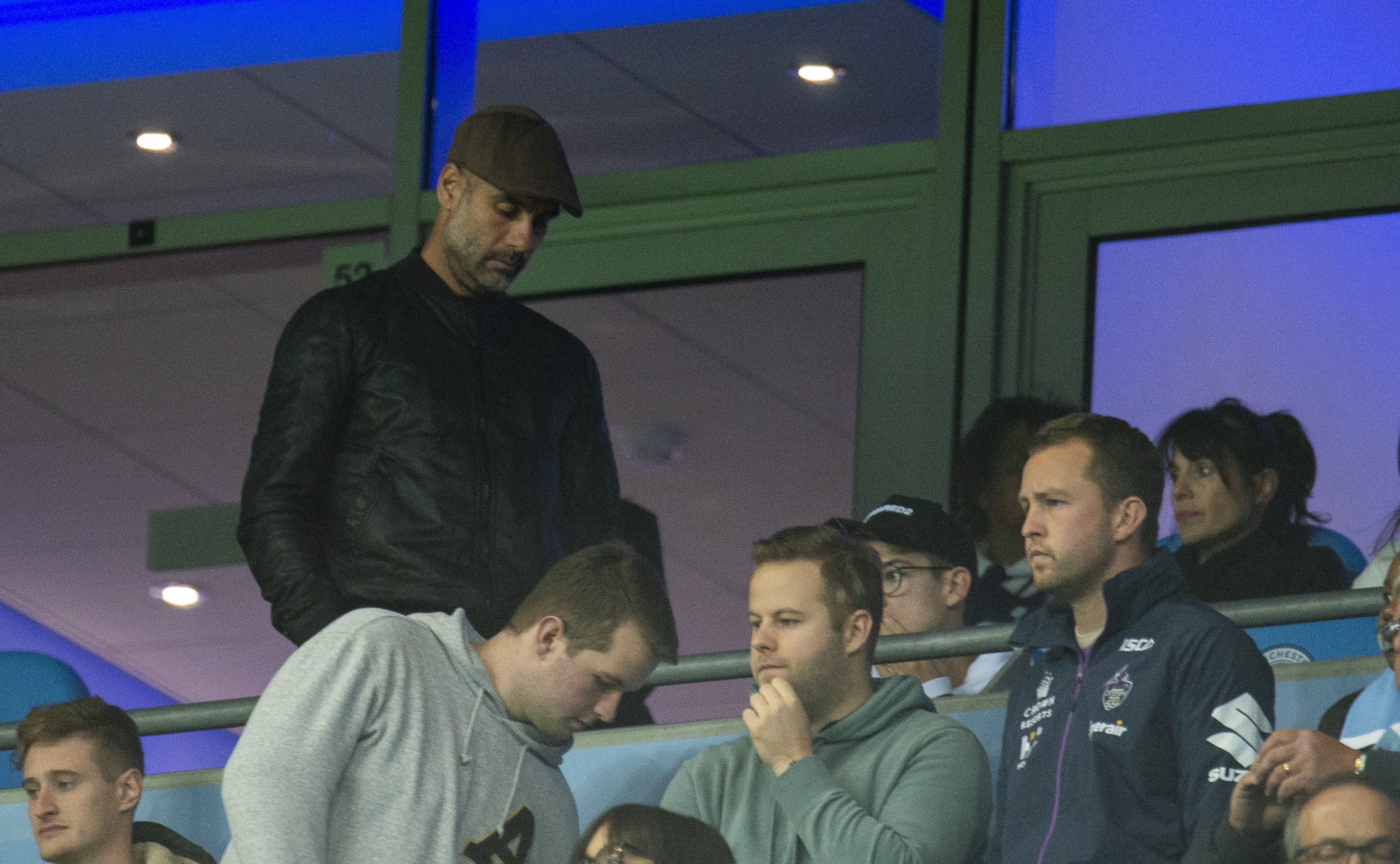 Con una boina y sufriendo, Guardiola vio el partido en la grada y Mikel Arteta, su ayudante, fue el que distribuyó las órdenes desde el banquillo.