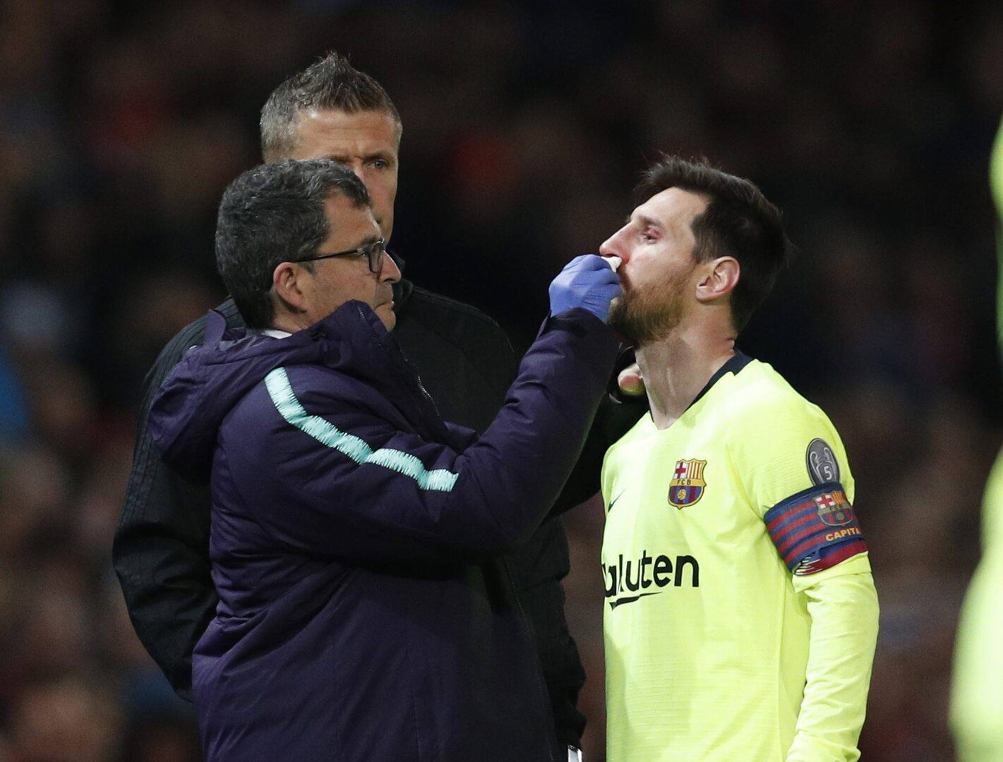 Y es que el colegiado italiano protagonizó varias polémicas más en Old Trafford, aunque en esta ocasión más interpretables. Justo antes de la media hora (minuto 28), hubo dos acciones muy polémicas en la misma jugada, en las que Rocchi decidió no intervenir. Primero con un manotazo de Smalling al rostro de Messi que se quedó sin sanción. El argentino se quedó con el ojo izquierdo inyectado en sangre, y también sangró por la nariz, teniendo que ser atendido por los servicios médicos del Barcelona.
