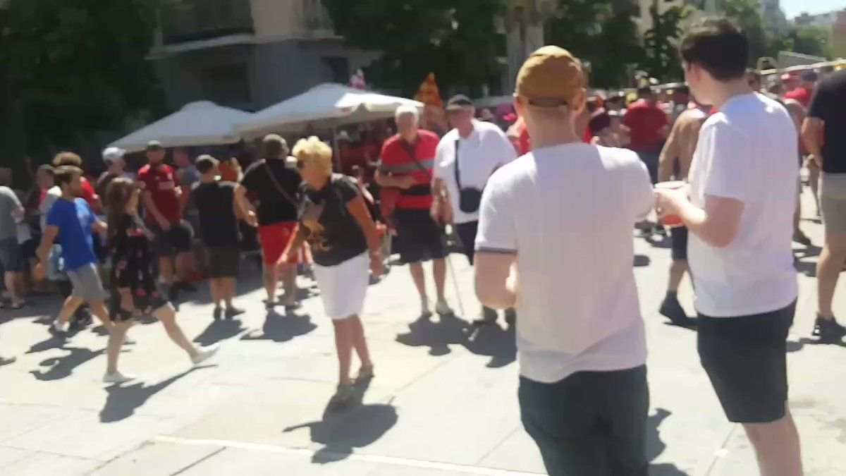 capta, a través del redactor Dani Blanco, un momento en el que se ve cómo aficionados del Liverpool y el Tottenham animan las horas previas a la gran final de Champions.