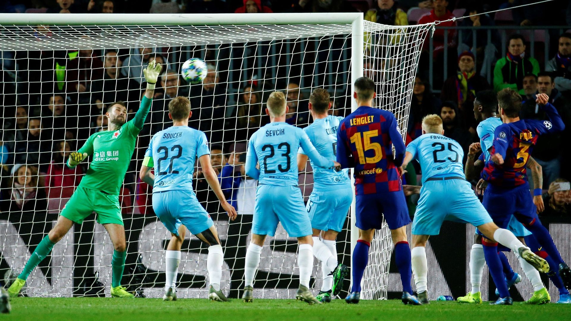 El Slavia tuvo una buena opción en el minuto 14, cuando Piqué se enredó con el balón en la banda y Peter Olayinka se lo robó. El delantero encaró hacia Ter Stegen hasta que Piqué lo placó por detrás, cometiendo falta y viendo amarilla, lo que le impedirá jugar el siguiente partido (Barcelona-Borussia Dortmund). La primera triangulación exitosa del Barcelona llegó en el 26, en una acción de Griezmann con Jordi Alba, y balón final para Messi, quien de tijera intentó un disparo acrobático que se perdió por alto.